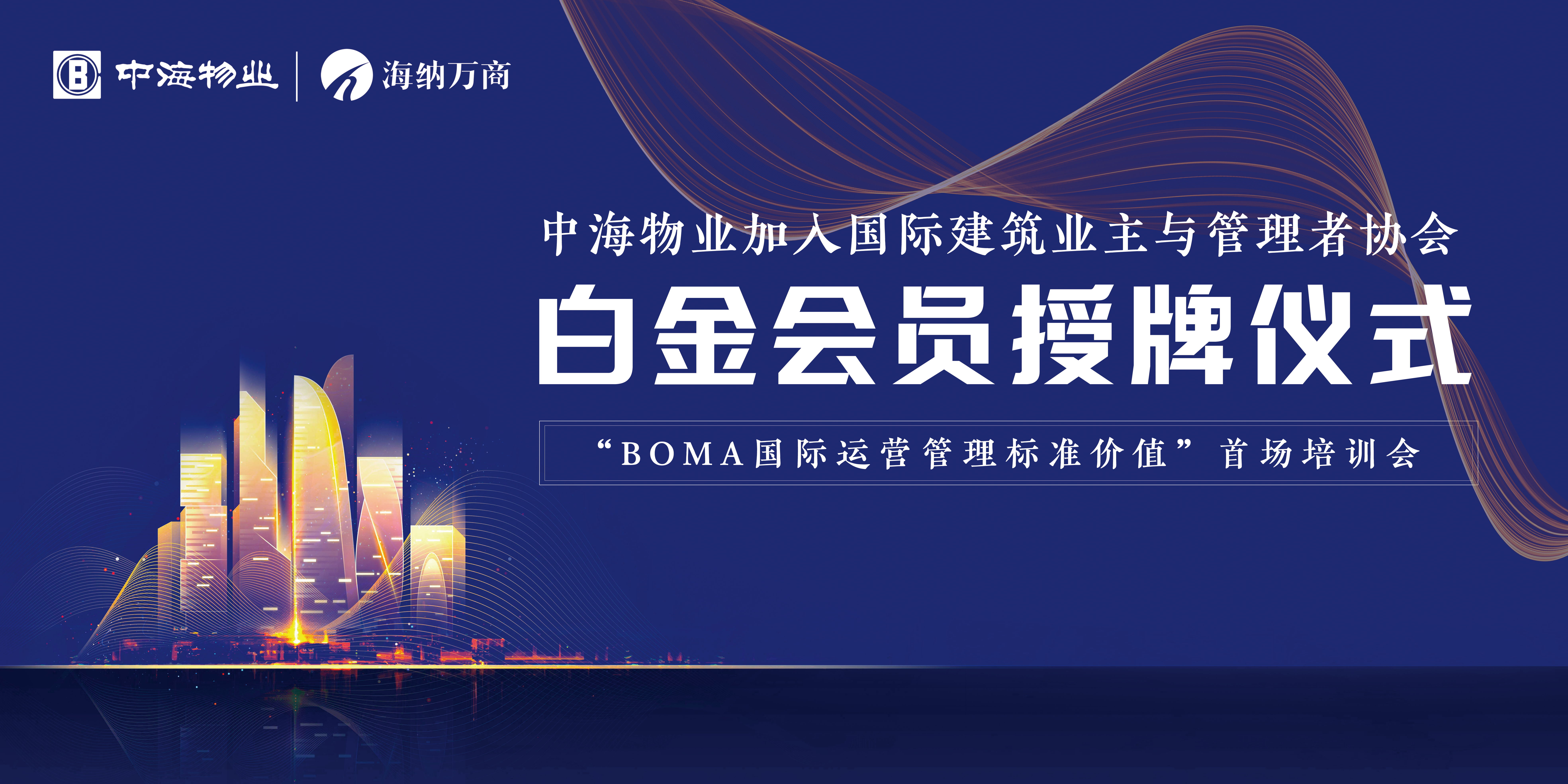 2019年7月17日,中海物业加入国家建筑业主与管理者协会白金会员授牌仪式暨"BOMA国际运营管理标准价值"首场内训会,在中海物业深圳总部举行。这是中海物业继成都项目和北京中建财富中心项目一次性通过BOMA中国COE卓越认证之后,获得的又一殊荣。目前,中国区仅有六座楼宇通过BOMA中国COE卓越认证,其中就包括中海物业成都项目和北京中建财富中心项目两座楼宇。BOMA会员含金量极高,其会员大多数是世界五百强企业,中海物业凭借高品质的管理加入国家建筑业主与管理者协会白金会员,对标国际标准华丽转身登上国际运营资产管理的舞台。